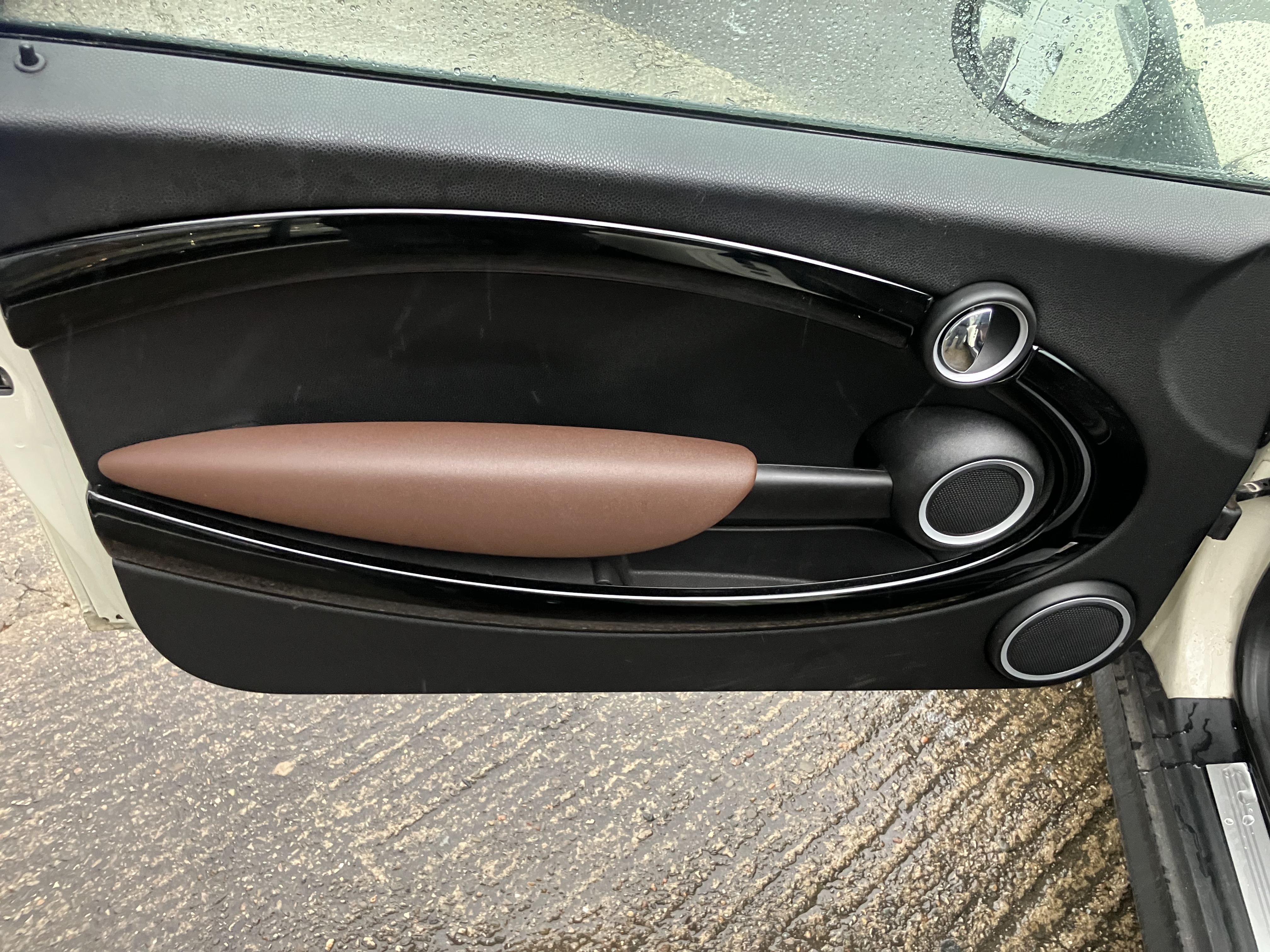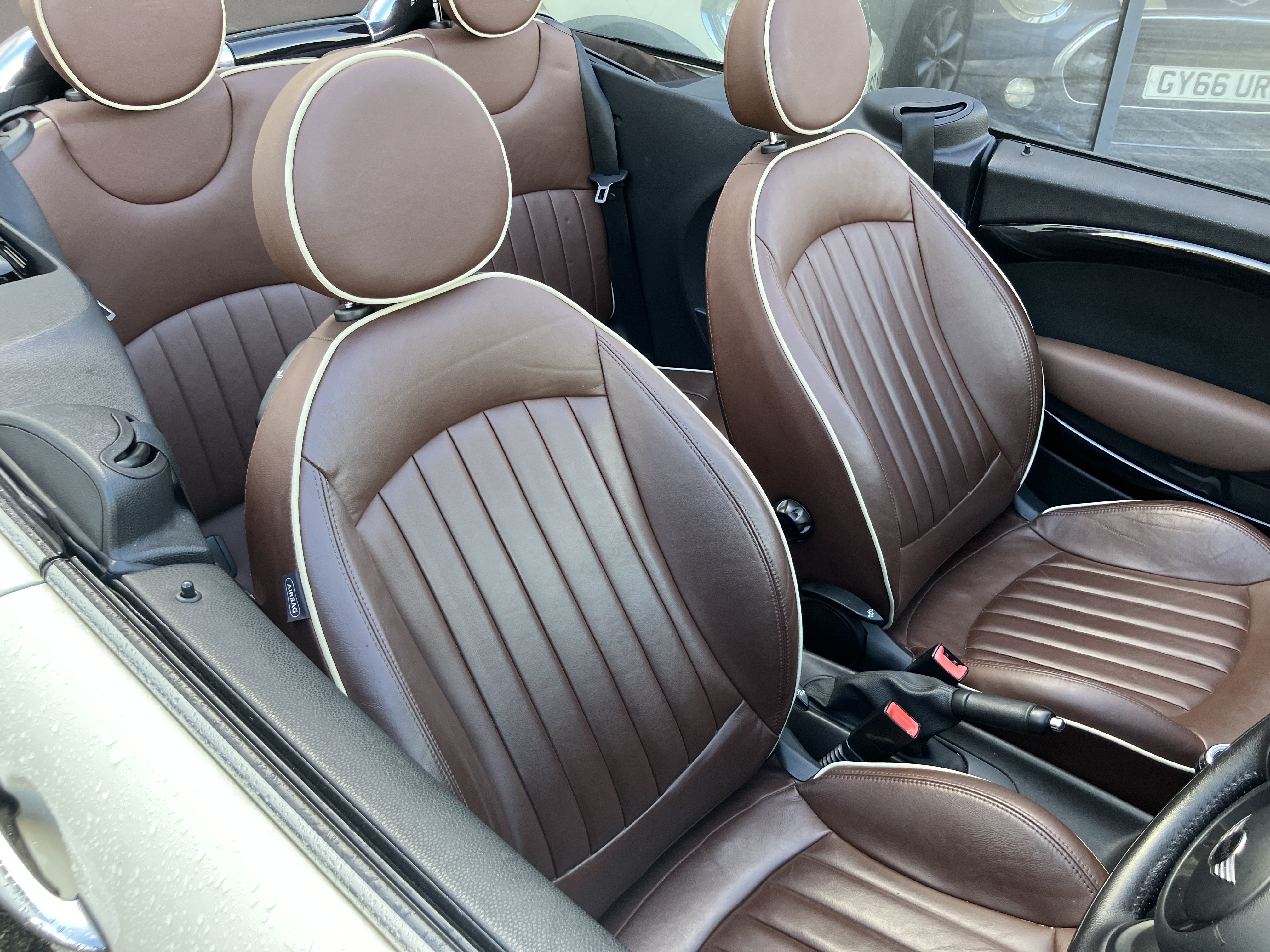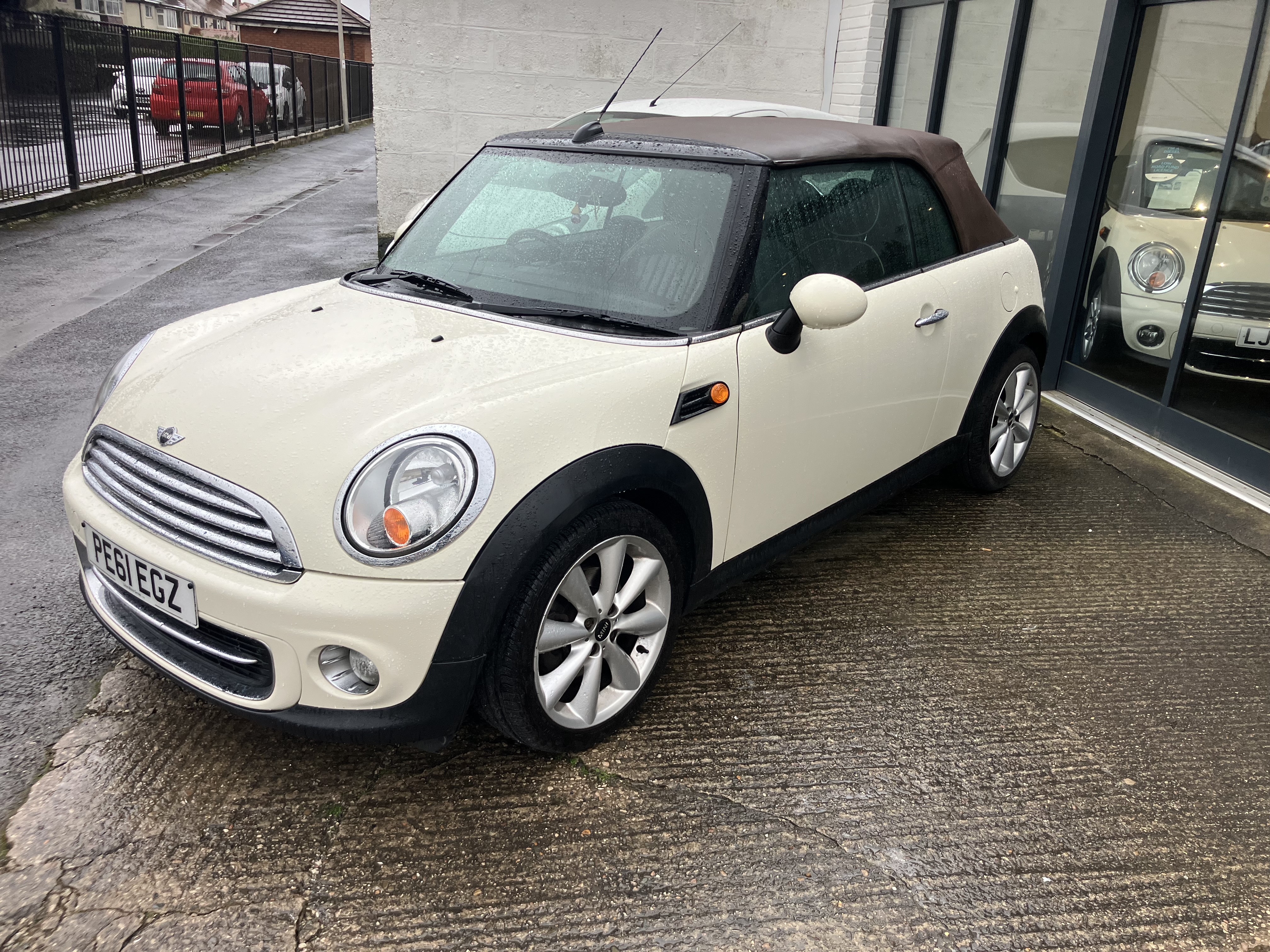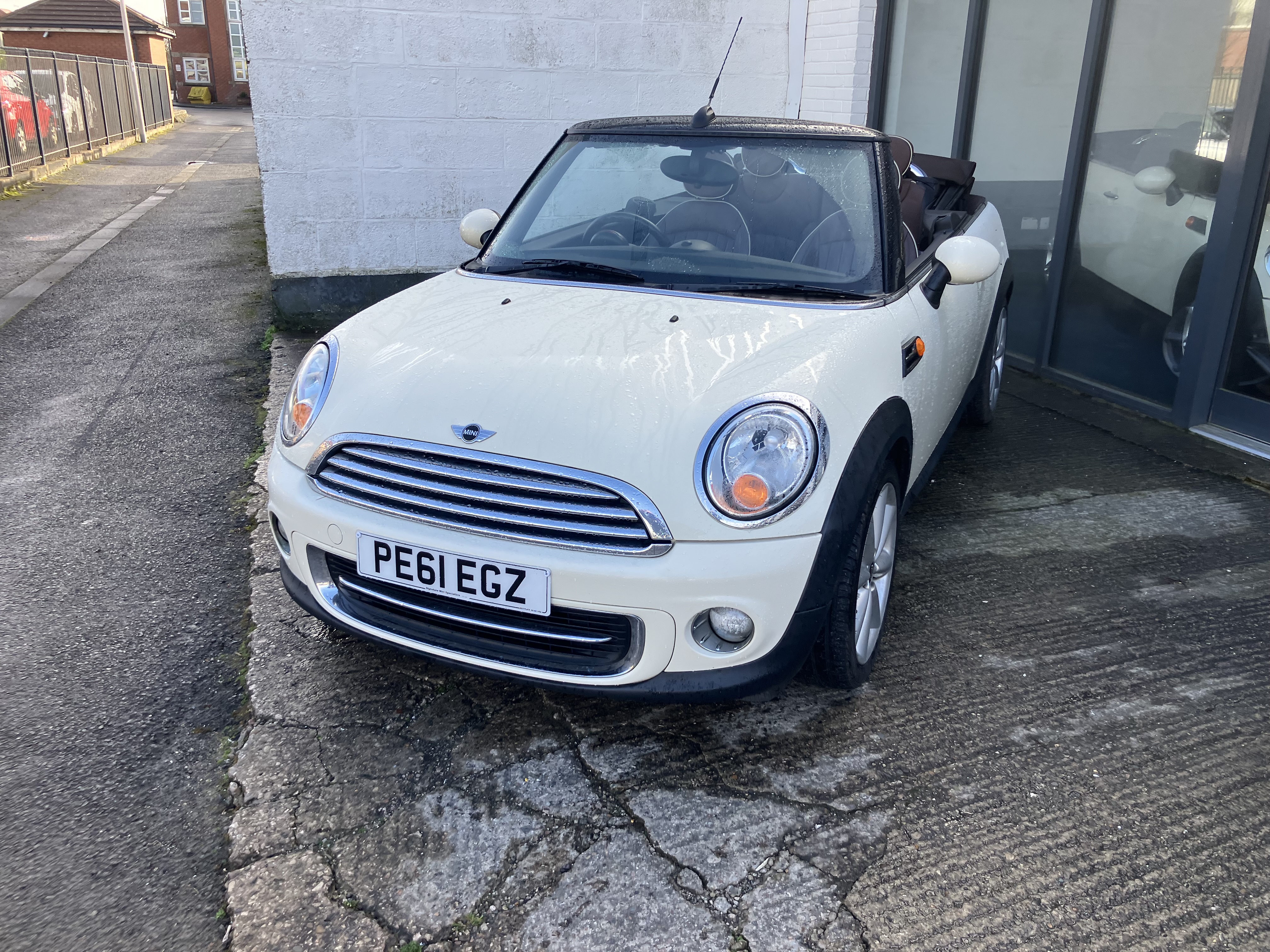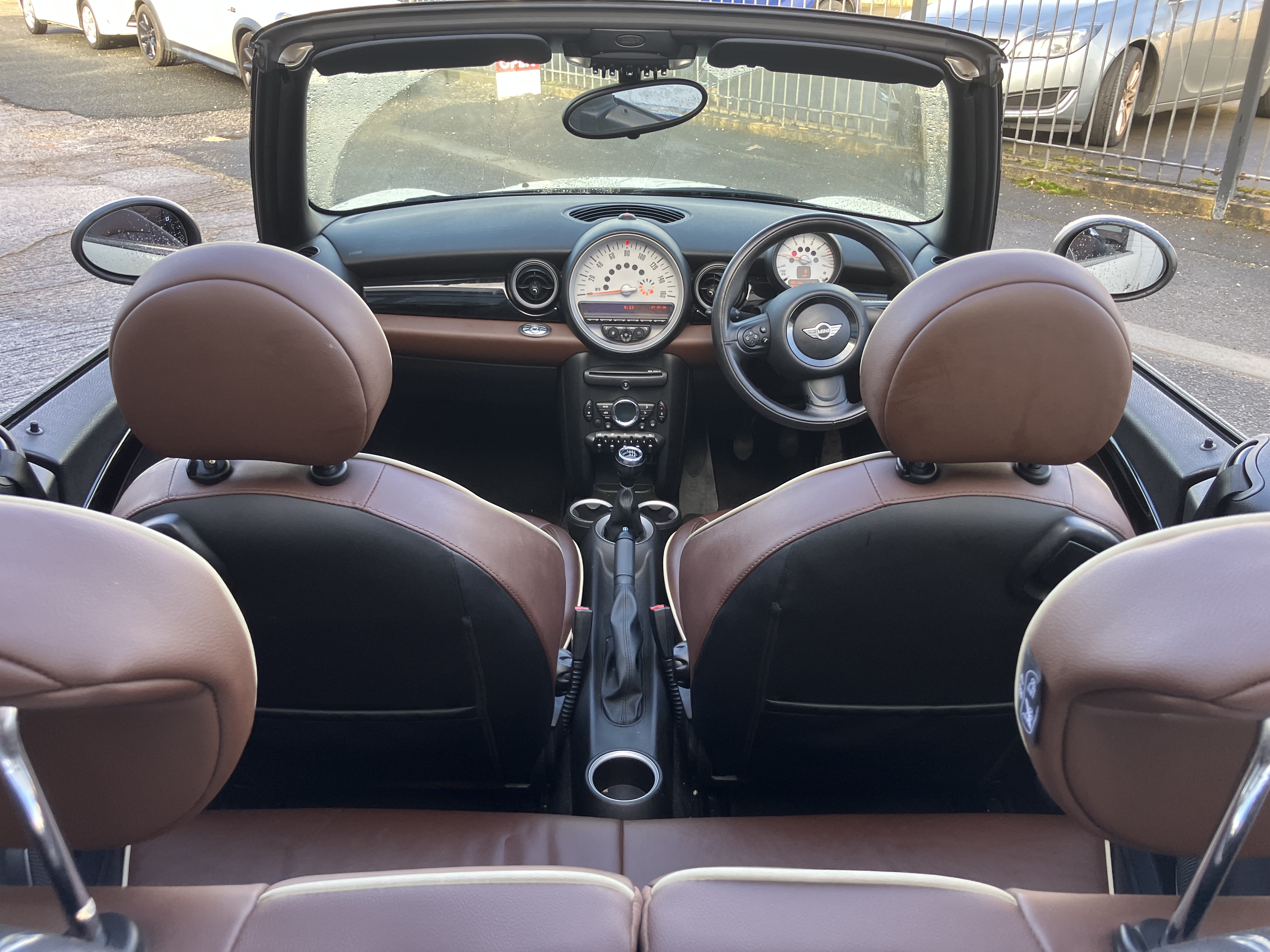 MINI CONVERTIBLE JUST IN TIME FOR SUMMER - REALY NICE COLOUR COMBINATION PEPPER WHITE WITH HOT CHOCOLATE LOUNGE LEATHER AND CHOCOLATE ROOF - REALY GOOD SPEC WITH 16" TWIN SPOKE 6- STAR ALLOYS AND REAR PARKING SENSORS - FULL SERVICE HISTORY - SERVICE AND MOT JUST DONE - 2 KEYS AND ALL HAND BOOKS